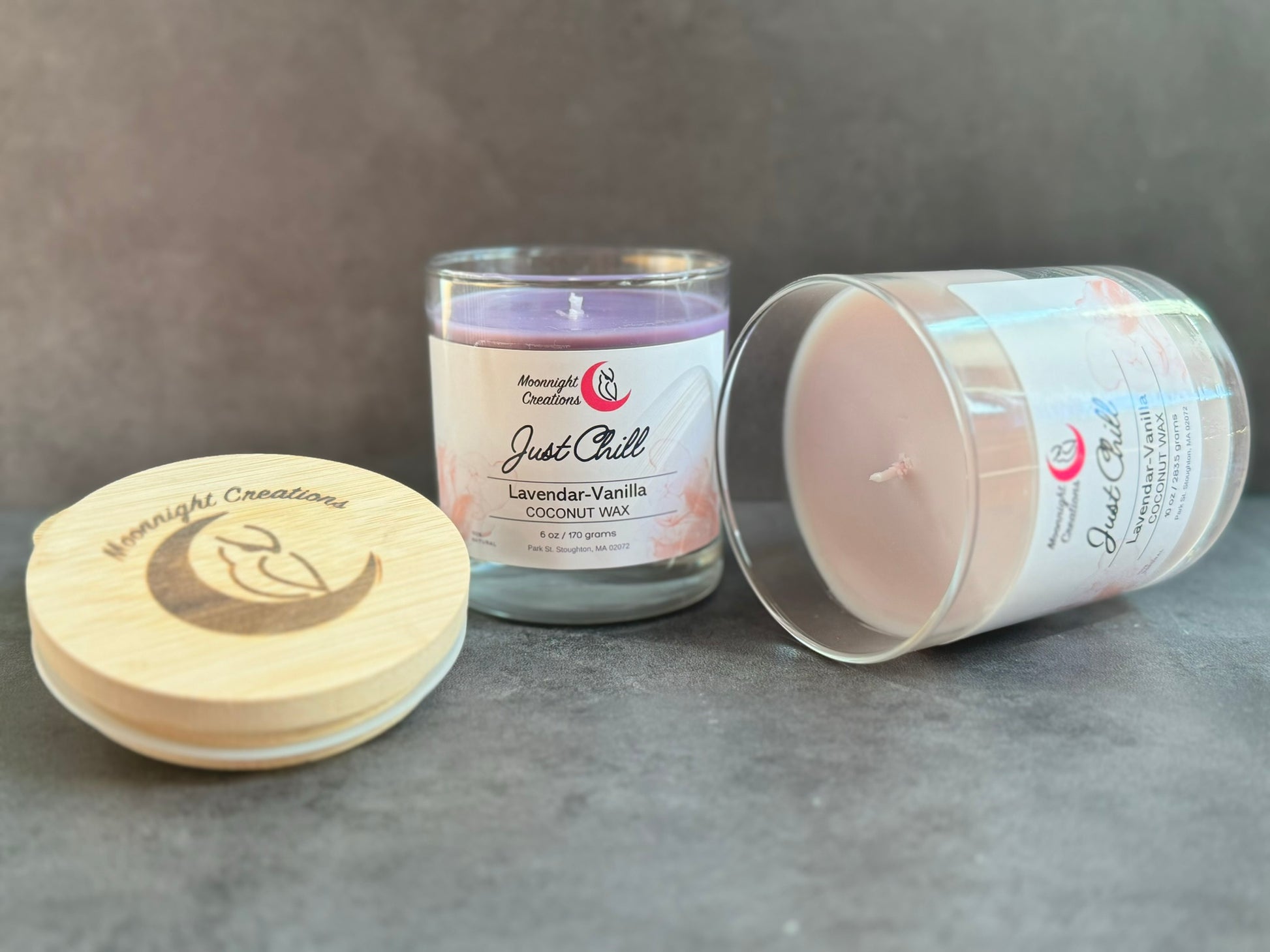 Just Chill is a 100 % coconut wax candle with a sensational aroma of Lavender flowers surrounded with crushed vanilla beans.